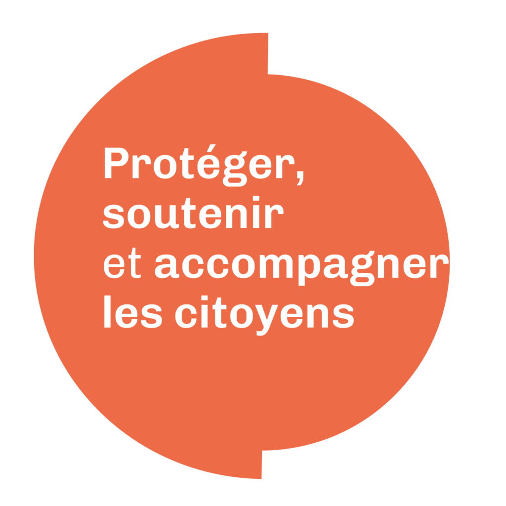 • Le premier axe place l’humain au cœur de nos priorités : protéger, soutenir et accompagner les citoyens.